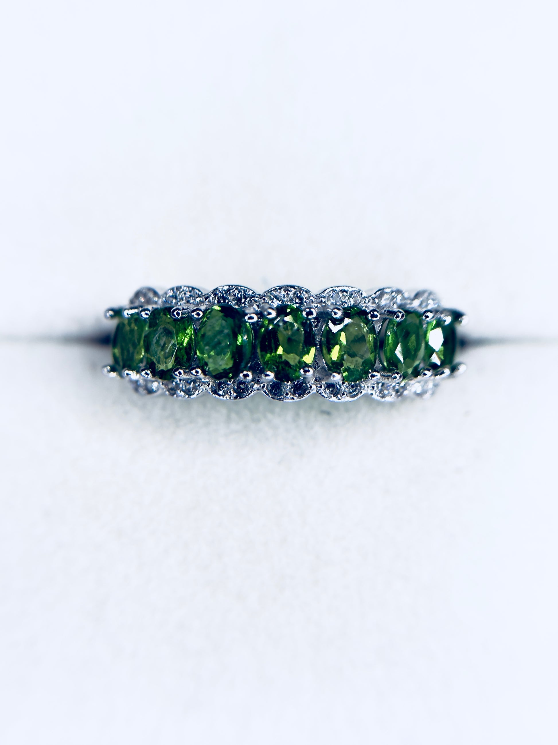A rare and vibrant diopside set in genuine .925 sterling silver. This adjustable ring radiates deep emerald-green energy, known for its powerful heart-healing and emotional renewal properties—a striking piece for both elegance and spiritual connection.