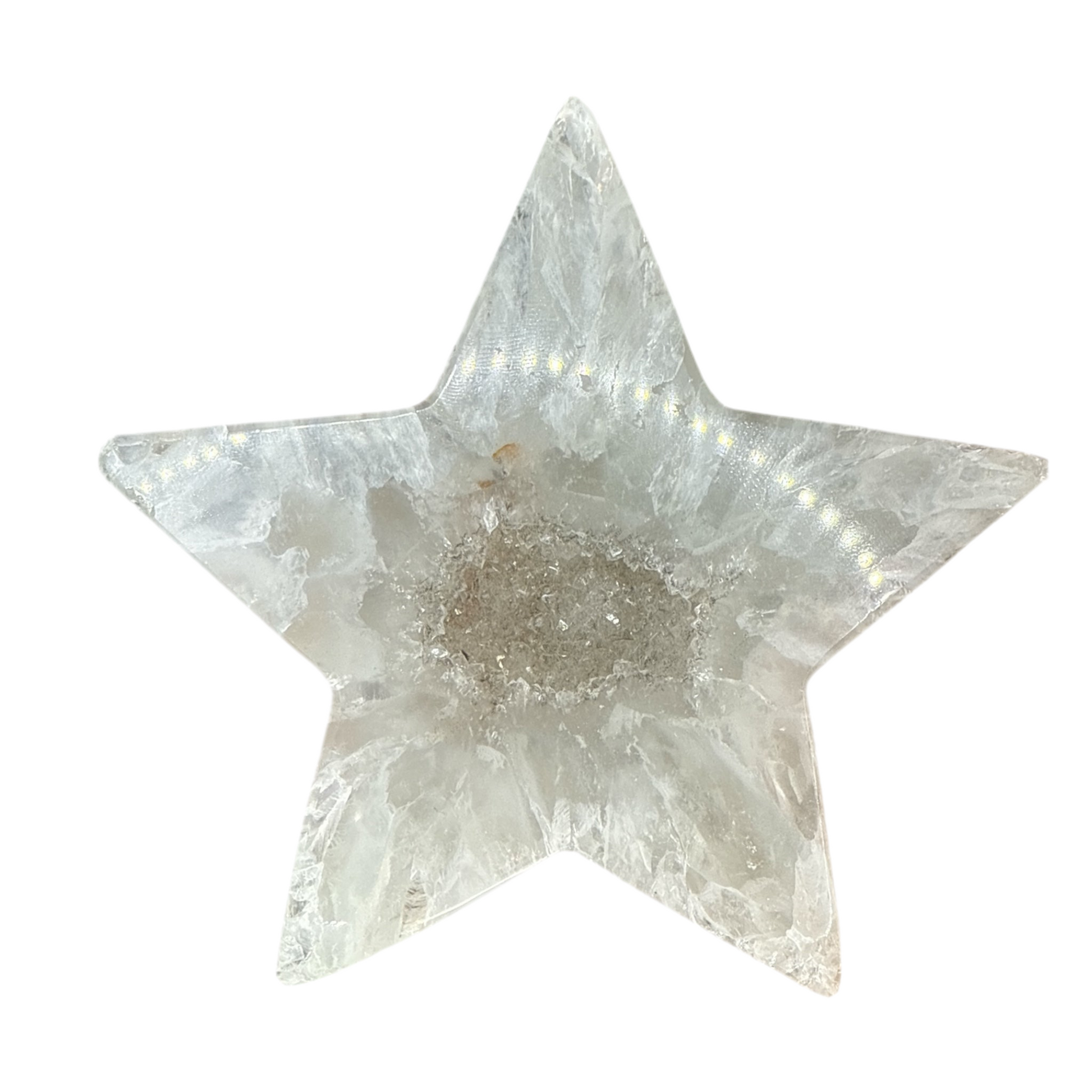 Shimmering with natural sparkle, this Druzy Agate Star is a radiant reminder of the beauty hidden within the earth. Each piece features a unique crystalline surface that catches the light, creating a magical, glittering effect. Agate is known for its grounding and calming energy, while the druzy layer adds an extra touch of uplifting sparkle.