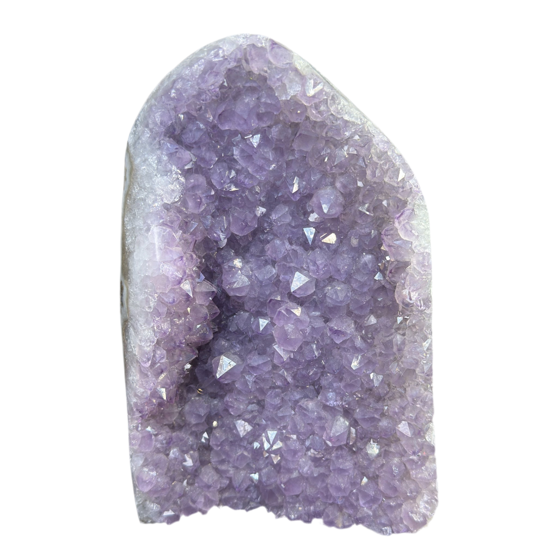 This breathtaking XL Amethyst Cut Base is a true statement piece. Featuring rich purple crystals with sparkling druzy points, it stands beautifully on its own cut base for easy display. Amethyst is known as the stone of peace and protection, radiating calming energy while enhancing spiritual growth and intuition.